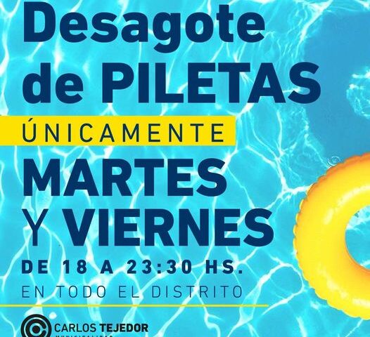La Secretaría de Servicios Públicos recuerda que el desagote de piletas deben realizarse únicamente los días martes y viernes de 18 a 23:30hs, en todas…