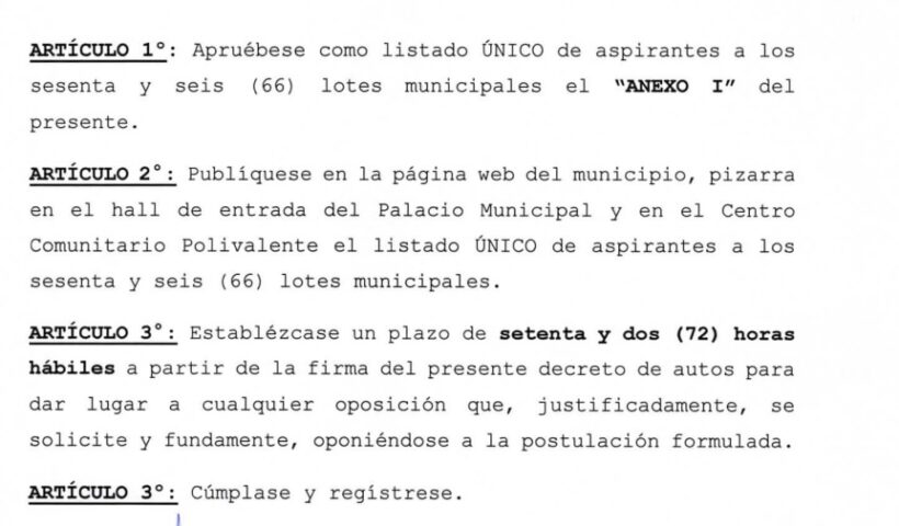 Seguir leyendo Se realizará en el Barrio Norte la Fiesta de la Tradición el 26/11El listado de personas que ingresarán al sorteo por los 66 lotes ¿Se difundirá el listado de los comprados al privado?